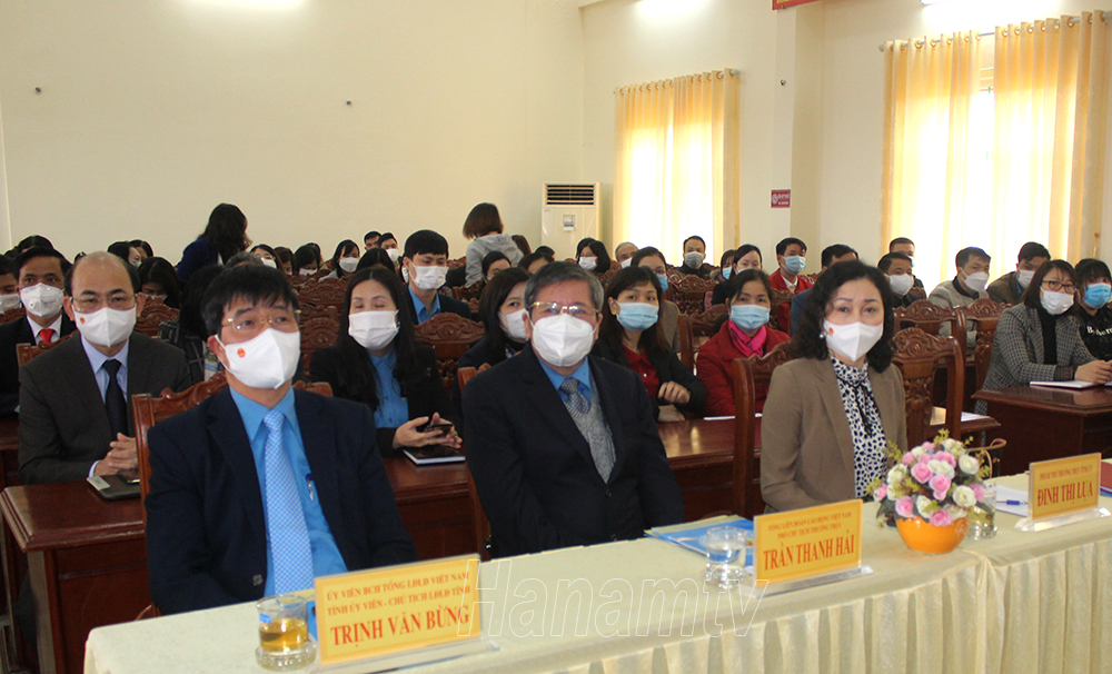 Phát biểu chỉ đạo tại hội nghị, đồng chí Trần Thanh Hải - Phó Chủ tịch Thường trực Tổng Liên đoàn lao động Việt Nam và đồng chí Đinh Thị Lụa - Phó Bí thư Thường trực Tỉnh ủy ghi nhận, biểu dương những nỗ lực, cố gắng và đóng góp tích cực, hiệu quả của đội ngũ công nhân, viên chức, người lao động và tổ chức công đoàn các cấp trong năm 2021. Các đồng chí đề nghị, thời gian tới, Liên đoàn lao động tỉnh tiếp tục lãnh đạo, chỉ đạo cán bộ, đoàn viên công đoàn, người lao động trong toàn tỉnh tổ chức thực hiện hiệu quả phương hướng nhiệm vụ công tác năm 2022 đã đề ra. Tăng cường công tác tuyên truyền, giáo dục tư tưởng để xây dựng giai cấp công nhân ngày càng lớn mạnh; tiếp tục xây dựng đội ngũ đoàn viên, người lao động Hà Nam có bản lĩnh chính trị vững vàng, tinh thông nghề nghiệp, năng động sáng tạo, có khả năng làm chủ công nghệ và tác phong công nghiệp đặc biệt trong bối cảnh tác động của cuộc Cách mạng Công nghiệp 4.0.