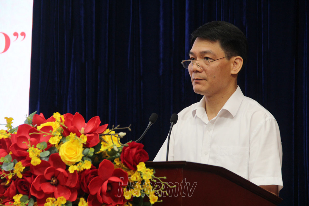 Đồng chí Nguyễn Đức Toàn, Trưởng Ban Tuyên giáo và Dân vận Tỉnh ủy phát biểu tại hội nghị.