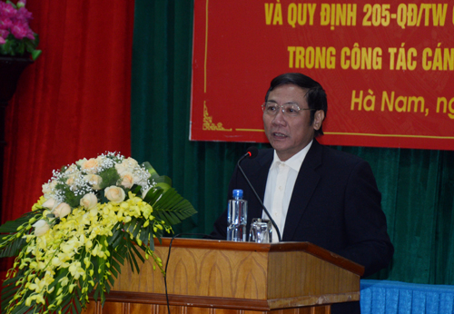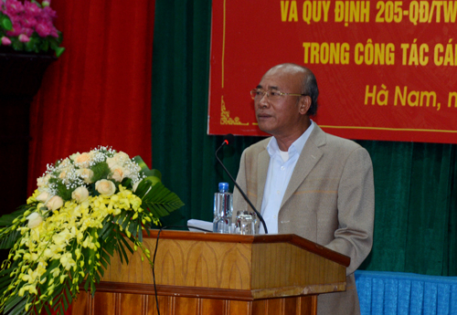 Tiếp đó, đồng chí Phạm Sỹ Lợi, Phó Bí thư Thường trực Tỉnh ủy quán triệt Quy định số 205-QĐ/TW về kiểm soát quyền lực trong công tác cán bộ và chống chạy chức, chạy quyền và Quy chế bầu cử trong Đảng. Đồng chí nhấn mạnh: Quy định số 205-QĐ/TW là bước cụ thể hóa Nghị quyết Đại hội XII của Đảng và các nghị quyết của Ban Chấp hành Trung ương, Bộ Chính trị về xây dựng Đảng và công tác cán bộ, đi trúng vào những vấn đề nhức nhối trong công tác cán bộ tồn tại suốt nhiều nhiệm kỳ vừa qua”.