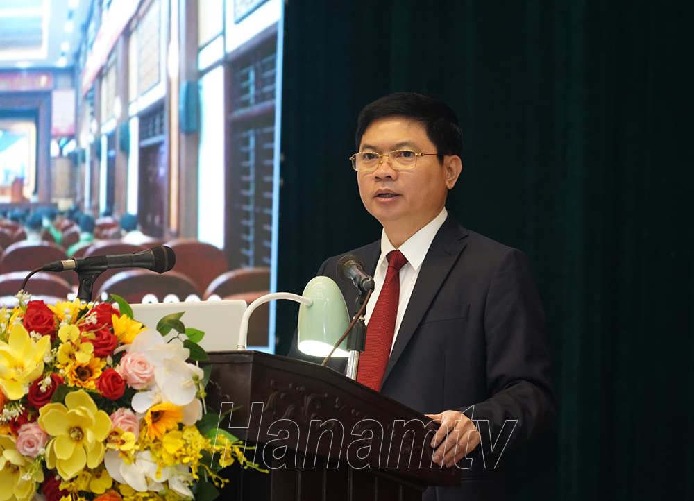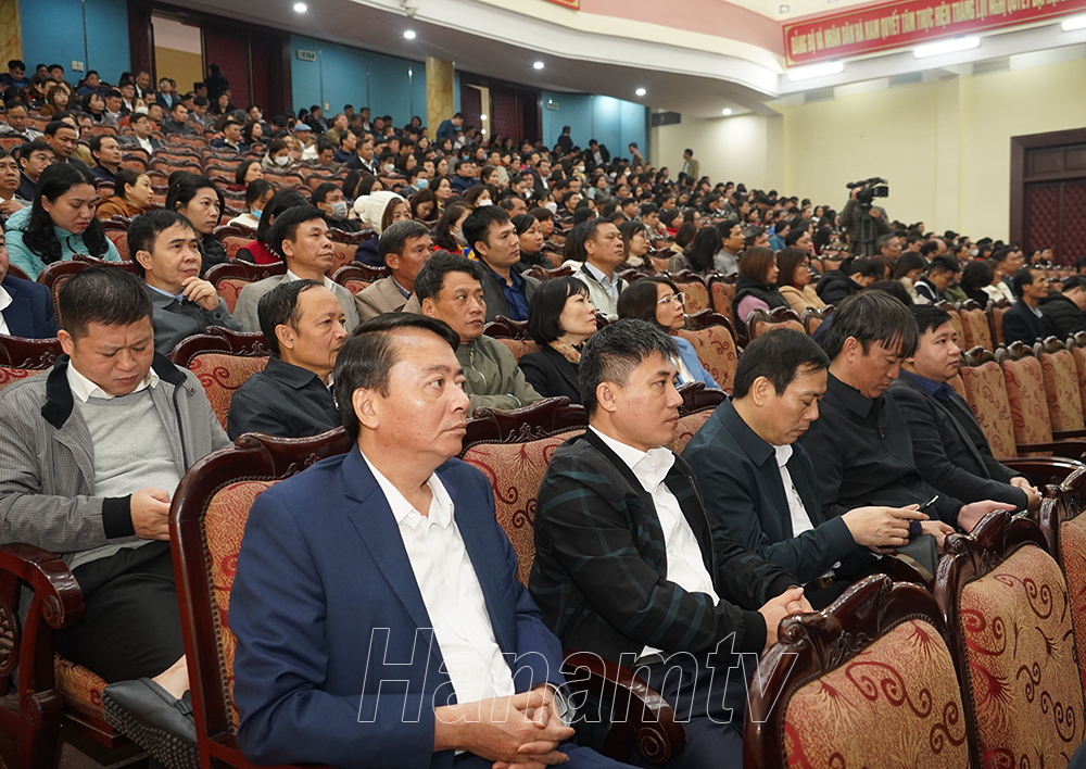 Tại hội nghị, đồng chí Trương Quốc Huy, Phó Bí thư Tỉnh ủy, Chủ tịch UBND tỉnh, Trưởng Đoàn Đại biểu Quốc hội tỉnh và đồng chí Nguyễn Anh Chức, Ủy viên BTV Tỉnh ủy, Phó Chủ tịch Thường trực UBND tỉnh quán triệt Chương trình hành động, Kế hoạch của Tỉnh ủy Hà Nam thực hiện các Nghị quyết, Kết luận của Ban chấp hành Trung ương Đảng khóa XIII gồm: Nghị quyết số 29-NQ/TW “Về tiếp tục đẩy mạnh công nghiệp hóa, hiện đại hóa đất nước đến năm 2030, tầm nhìn đến năm 2045”; Kết luận số 45-KL/TW “Về định hướng Quy hoạc tổng thể quốc gia thời kỳ 2021-2030, tầm nhìn đến năm 2050”; Kết luận số 42-KL/TW về dự toán ngân sách nhà nước năm 2023, Kế hoạch tài chính – ngân sách nhà nước 3 năm 2023-2025, về chính sách tiền lương; Nghị quyết số 19-NQ/TW “Về nông nghiệp, nông dân, nông thôn đến năm 2030, tầm nhìn đến năm 2045”; Nghị quyết số 18-NQ/TW “Về tiếp tục đổi mới, hoàn thiện thể chế, chính sách, nâng cao hiệu lực, hiệu quả quản lý và sử dụng đất, tạo động lực đưa nước ta trở thành nước phát triển có thu nhập cao”; Nghị quyết số 20-NQ/TW “Về tiếp tục đổi mới, phát triển và nâng cao hiệu quả kinh tế tập thể trong giai đoạn mới”. Đồng thời, quán triệt 2 Nghị quyết của Bộ Chính trị gồm: Nghị quyết số 23-NQ/TW "Về phương hướng phát triển kinh tế - xã hội và bảo đảm quốc phòng, an ninh vùng Tây Nguyên đến năm 2030, tầm nhìn đến năm 2045” và Nghị số 26-NQ/TW về “Phát triển kinh tế - xã hội và bảo đảm quốc phòng, an ninh vùng Bắc Trung Bộ và duyên hải Trung Bộ đến năm 2030, tầm nhìn đến năm 2045”.