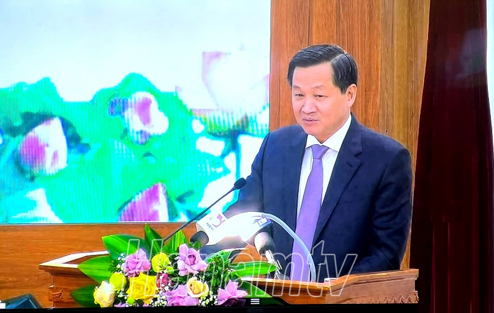 Phó Thủ tướng Chính phủ Lê Minh Khái phát biểu chỉ đạo tại hội nghị (Ảnh chụp qua màn hình).