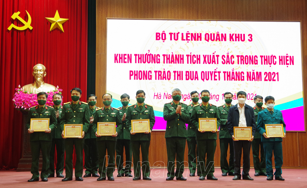 Trung tướng Nguyễn Quang Ngọc, Ủy viên Trung ương Đảng, Ủy viên Quân ủy Trung ương, Tư lệnh Quân khu 3 tặng bằng khen cho các tập thể, cá nhân có thành tích xuất sắc trong thực hiện phong trào thi đua Quyết thắng năm 2021.