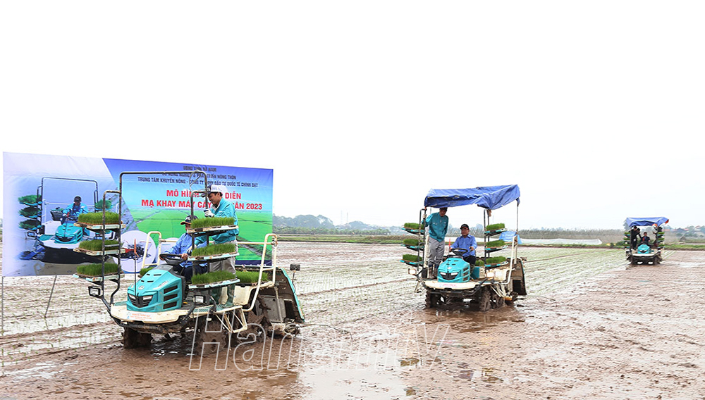Trình diễn mô hình mạ khay, cấy máy vụ xuân 2023