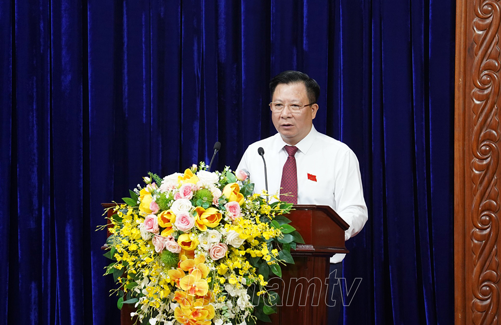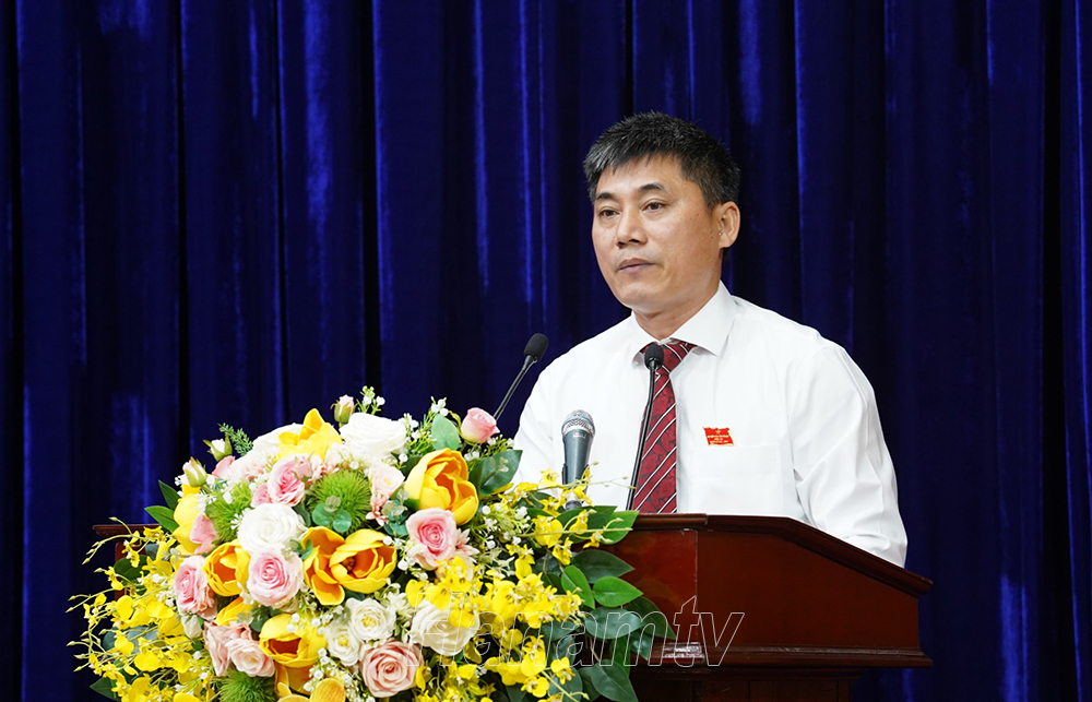 Đồng chí Trần Xuân Dưỡng, Tỉnh ủy viên, Phó Chủ tịch UBND tỉnh trình bày các Tờ trình đề nghị ban hành Nghị quyết tại Kỳ họp.
