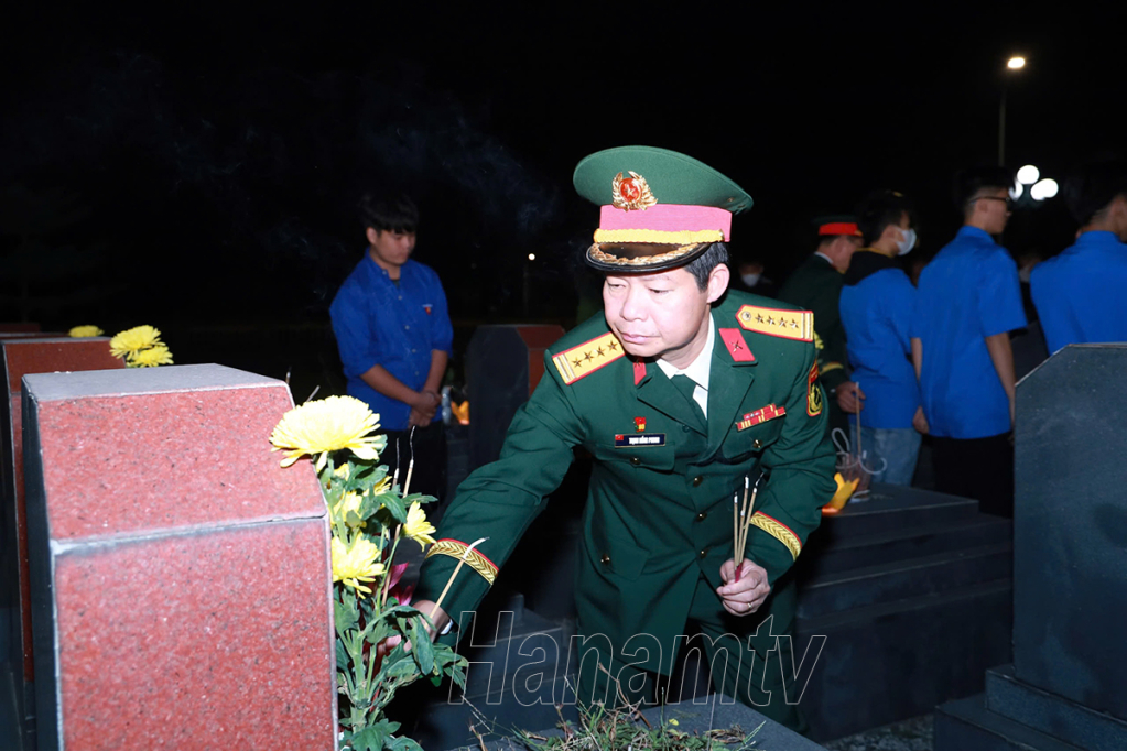 Đại tá Trịnh Hồng Phong, Ủy viên BTV Tỉnh ủy, Chỉ huy trưởng Bộ CHQS tỉnh thắp hương trên các phần mộ liệt sỹ tại Nghĩa trang liệt sỹ thành phố.Lãnh đạo Tỉnh đoàn Hà Nam dâng hương trên các phần mộ liệt sỹ.Lễ dâng hương, thắp nến tri ân là hoạt động ý nghĩa sâu sắc để tuyên truyền, giáo dục thế hệ trẻ về truyền thống vẻ vang 80 năm xây dựng, chiến đấu và trưởng thành của Quân đội nhân dân Việt Nam anh hùng.