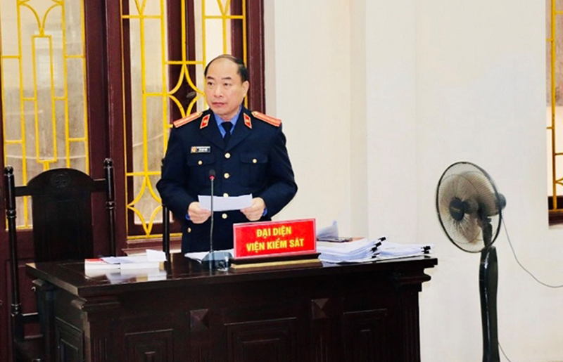 Kiểm sát viên VKSND tỉnh Hà Nam thực hành quyền công tố tại phiên tòa.
