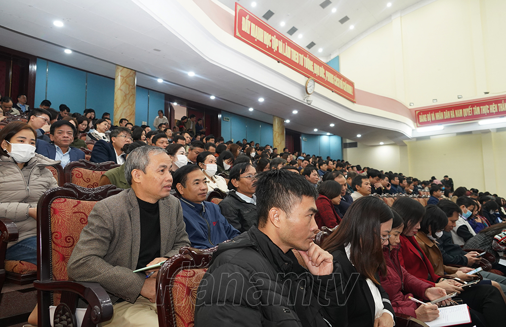 Các đại biểu dự hội nghị tại điểm cầu Nhà Văn hóa Trung tâm tỉnh Hà Nam.