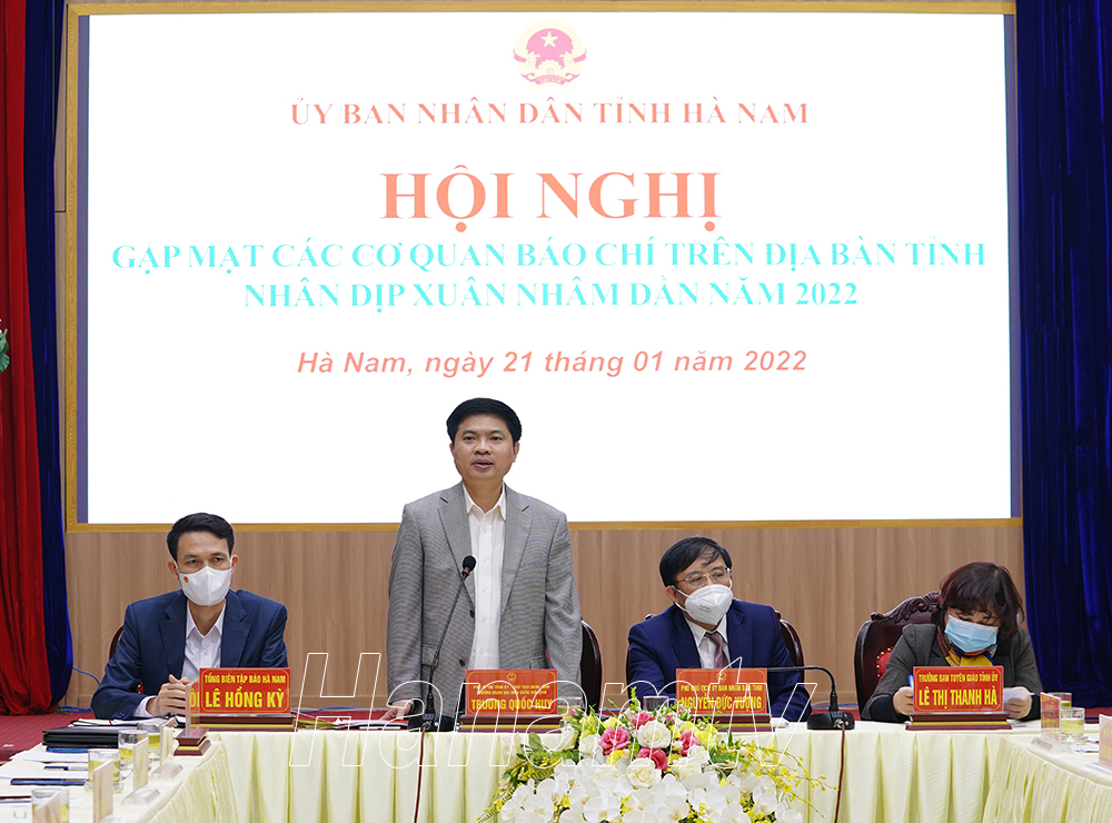 Đồng chí Chủ tịch UBND tỉnh cũng nhấn mạnh: Để các cơ quan báo chí hoàn thành tốt nhiệm vụ được giao, UBND tỉnh đã ban hành Quyết định số 29/2019/QĐ-UBND ngày 30 tháng 8 năm 2019 về Quy chế Phát ngôn và Cung cấp thông tin cho báo chí của các cơ quan hành chính nhà nước trên địa bàn tỉnh Hà Nam; đồng thời tiếp tục chỉ đạo các sở, ban, ngành, UBND các huyện, thành phố chủ động cung cấp thông tin chính xác, đầy đủ và kịp thời về quy hoạch, các cơ chế chính sách, sự chỉ đạo điều hành thuộc phạm vi quản lý, nhất là vấn đề được xã hội quan tâm; lãnh đạo tỉnh luôn sẵn sàng phối hợp và tạo điều kiện thuận lợi cho hoạt động của các cơ quan báo chí.