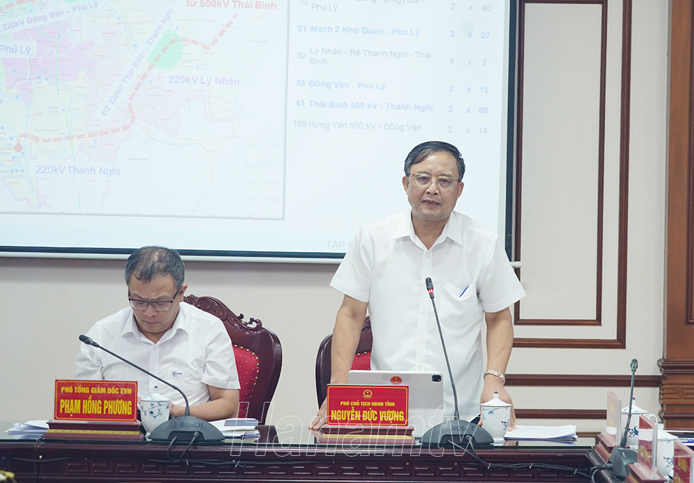 Đồng chí Chủ tịch UBND tỉnh nhấn mạnh, Hà Nam đang trong giai đoạn đẩy mạnh thu hút đầu tư, phát triển thêm các KCN, CCN, các khu đô thị, du lịch vì vậy nhu cầu về nguồn điện cho sản xuất, đời sống dân sinh là rất lớn; do đó tỉnh mong muốn tiếp tục nhận được sự quan tâm, tạo điều kiện của Tập đoàn Điện lực Việt Nam, Tổng Công ty Điện lực Miền Bắc đẩy nhanh tiến độ đầu tư các dự án điện, đảm bảo cho sự phát triển của tỉnh.