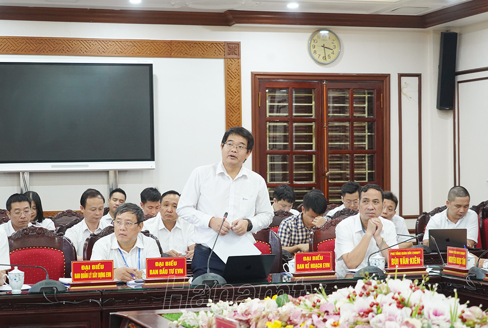 Đại diện Ban Kế hoạch Tập đoàn Điện lực Việt Nam báo cáo các dự án đầu tư cung cấp điện của trên địa bàn tỉnh Hà Nam tại hội nghị.