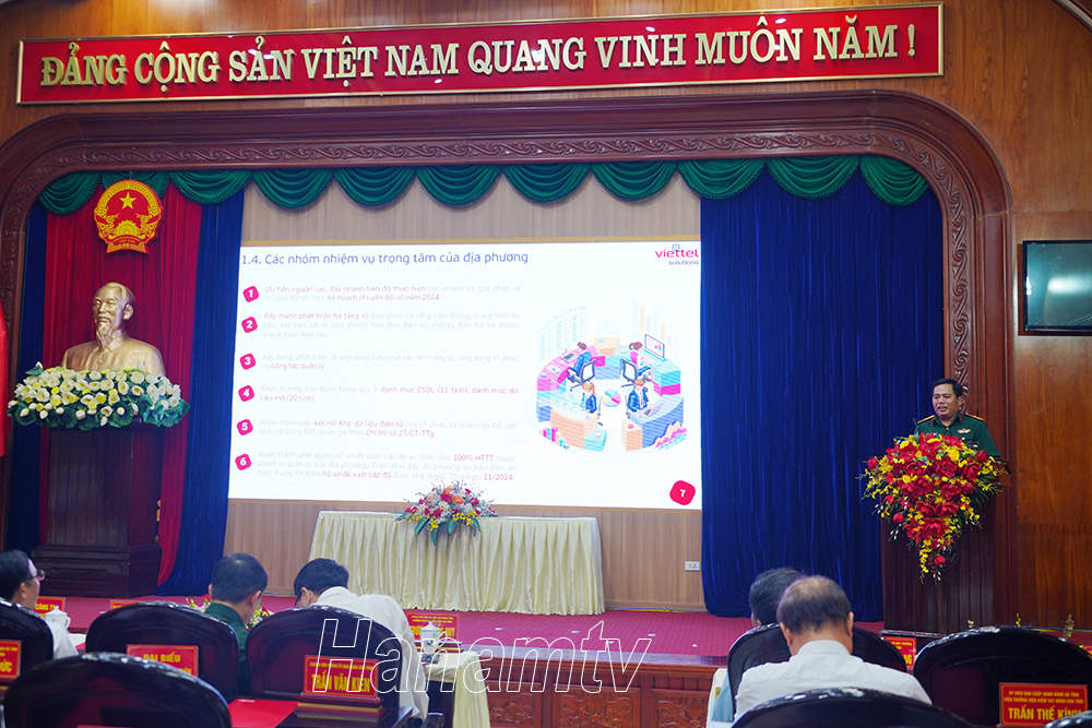 Đại diện Tập đoàn Viettel trình bày Hiện trạng và giải pháp chuyển đổi số tỉnh Hà Nam.