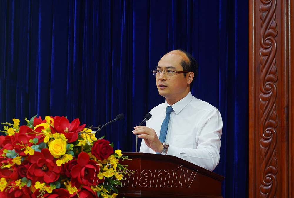 Giám đốc Sở Thông tin và Truyền thông Vũ Tiến Tiệp trình bày Thỏa thuận hợp tác về về Chuyển đổi số tỉnh Hà Nam giai đoạn 2024 – 2030 giữa UBND tỉnh Hà Nam và Tập đoàn Viettel.