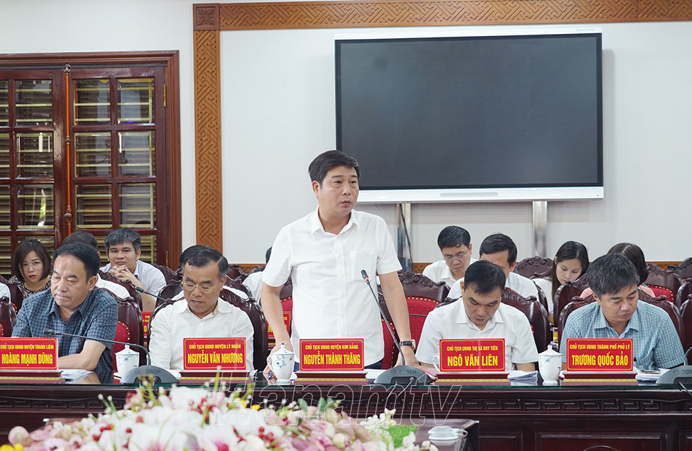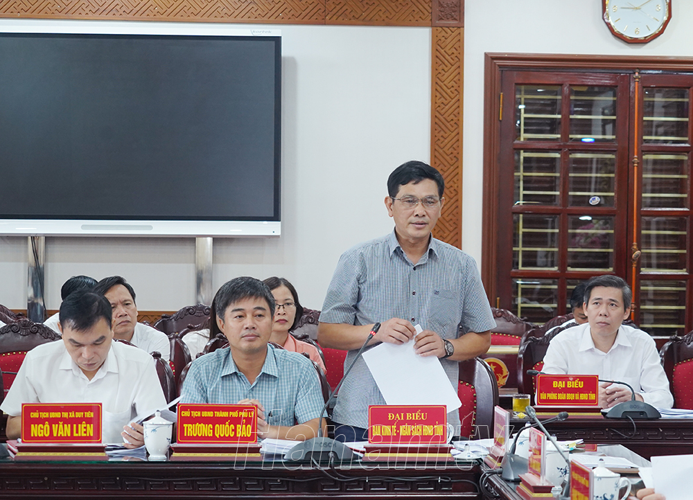 Lãnh đạo Ban Kinh tế - Ngân sách HĐND tỉnh phát biểu tại hội nghị.Chủ tịch UBND huyện Kim Bảng phát biểu tại hội nghị.