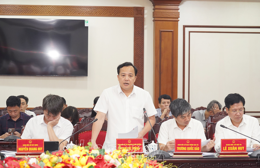Sở Tài nguyên và Môi trường báo cáo tại hội nghị.