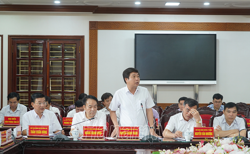 Lãnh đạo UBND huyện Kim Bảng phát biểu tại hội nghị.