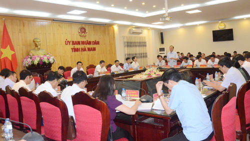 Tại phiên làm việc buổi chiều, UBND tỉnh tiếp tục nghe các Sở Nội vụ; Tài nguyên và Môi trường; Văn hóa, Thể thao và Du lịch trình bày tờ trình, dự thảo Nghị quyết về : giao biên chế công chức, hợp đồng theo Nghị định số 68/2000/NĐ – CP trong các cơ quan hành chính Nhà nước và số lượng người làm việc trong các đơn vị sự nghiệp công lập năm 2019; về các dự án thu hồi và chuyển mục đích sử dụng đất dưới 10 ha đất trồng lúa bổ sung, điều chỉnh năm 2019 trên địa bàn tỉnh; về sửa đổi Nghị quyết số 19/2012/NQ – HĐND ngày 7/12/2012 của HĐND tỉnh về quy định mức chi ngân sách đối với một số lĩnh vực thể dục, thể thao tỉnh Hà Nam.