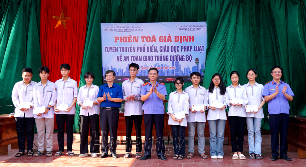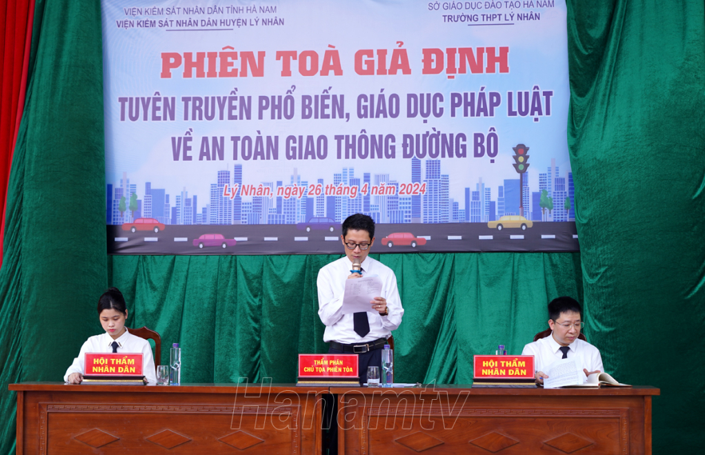 Chiều 26/4, Viện Kiểm sát nhân dân (KSND) huyện Lý Nhân tổ chức phiên tòa giả định xét xử sơ thẩm vụ án hình sự “Vi phạm quy định về tham gia giao thông đường bộ” để tuyên truyền, phổ biến giáo dục pháp luật về an toàn giao thông đường bộ cho học sinh Trường THPT Lý Nhân.