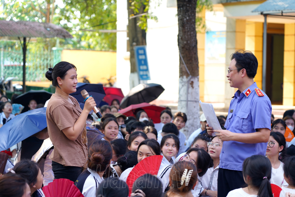 Cũng tại chương trình, các em học sinh Trường THPT Lý Nhân đã tham gia giao lưu, trả lời những câu hỏi của Ban tổ chức liên quan đến những nội dung được tuyên truyền, giới thiệu thông qua phiên tòa giả định. Phần giao lưu diễn ra sôi nổi và nhận được sự hưởng ứng nhiệt tình của học sinh góp phần tăng tính tương tác và hiệu quả của buổi tuyên truyền.