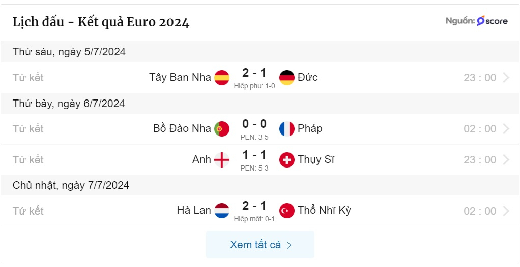 Xác định 4 đội vào bán kết Euro 2024