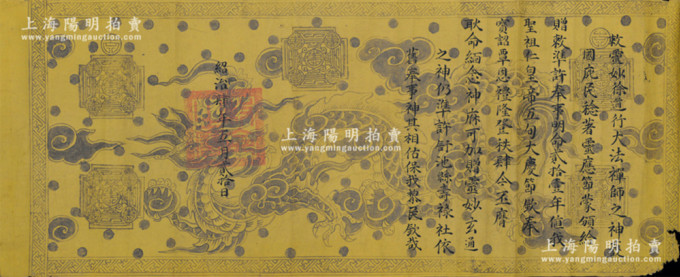 Trang web hãng đấu giá Dương Minh Thượng Hải hiện thông tin các cổ vật sẽ được bán ở phiên đấu giá Xuân 2023. Theo hãng này, có 12 đạo sắc phong - chủ yếu của vua thời Nguyễn - sẽ được rao bán ở phiên ngày 22/4. Những thánh chỉ này in trên giấy vàng, họa tiết rồng, còn nguyên vẹn.