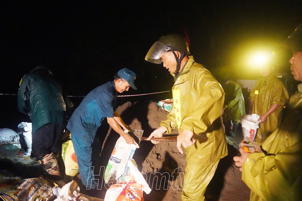 “Các lực lượng phải làm việc xuyên đêm để khắc phục xong sự cố sạt trượt mái đê này ngay trong đêm nay. Đồng thời UBND huyện cũng chỉ đạo các địa phương có tuyến đê đi qua túc trực 24/24 và tổ chức tuần tra, kiểm soát, đặc biệt là khi nước sông lên cao, nhằm kịp thời phát hiện sự cố nứt, sạt trượt mái đê để xử lý ngay trong giờ đầu” – ông Nguyễn Đức Nhương cho biết thêm.