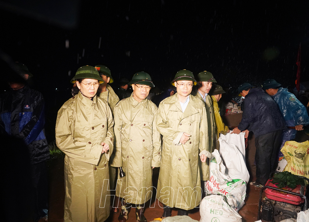 Ngay sau khi nhận được thông tin về sự cố sạt trượt mái đê, đe dọa an toàn tuyến đê hữu Hồng, trong đêm 10/9, đồng chí Lê Thị Thủy, Ủy viên Trung ương Đảng, Bí thư Tỉnh ủy, Chủ tịch HĐND tỉnh đã đi kiểm tra, chỉ đạo công tác khắc phục sự cố tại đây. Qua kiểm tra, đồng chí Bí thư Tỉnh ủy đánh giá cao sự chủ động của huyện Lý Nhân trong việc khắc phục sự cố. Đồng chí yêu cầu huyện Lý Nhân tập trung nhân lực, phương tiện khẩn trương xử lý sự cố ngay trong đêm nay với phương châm “4 tại chỗ”; tiếp tục theo dõi diễn biến sự cố để chủ động ứng phó. Đồng thời, phải bố trí lực lượng ứng trực 24/24 tại toàn tuyến đê, kịp thời phát hiện sự cố và xử lý ngay giờ đầu, không để xảy ra thiệt hại về người và tài sản của nhân dân, đặc biệt khi lũ sông Hồng tiếp tục dâng cao, dự báo nguy cơ gây tràn vỡ các đê bối ven sông, sạt lở đê kè ảnh hưởng nghiêm trọng đến các vị trí xung yếu thuộc hệ thống đê, kè, công trình ven sông thuộc các tỉnh đồng bằng sông Hồng, trong đó có Hà Nam.
